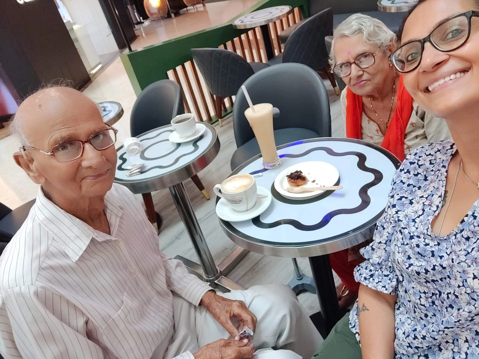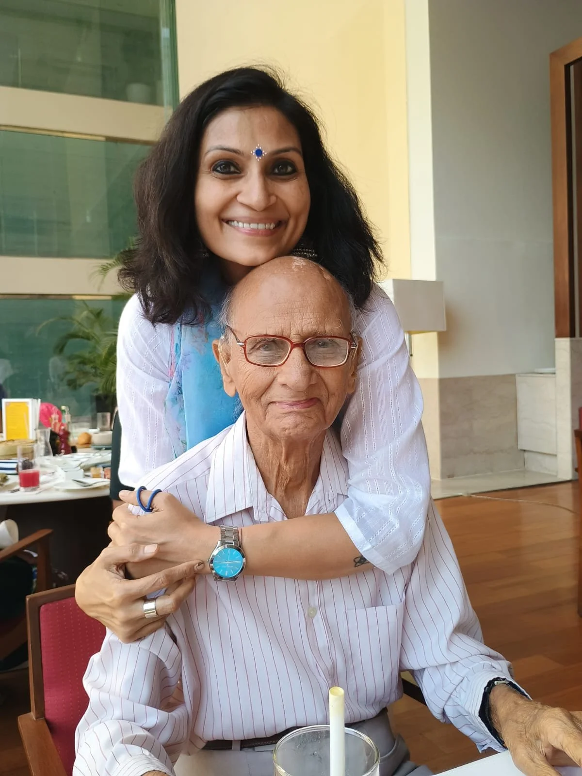 Some memories live in the small rituals we built around him: coffee dates, lunches at Gymkhana Club with both of us sharing our favorite hot brandy punch, where our conversation meandered from news to family stories to gentle advice; birthday celebrations with cake, family and a few close friends gathered around, many photos, and that look in his eyes that said, without words, “This was so much fun.” We had the precious blessing of celebrating his 95th birthday at home this year. I was so tempted to share those photos that night, to let the world see the light in his eyes. But a small, superstitious part of me—the part that still believes in guarding joy from buri nazar—held back. It surprised me, that fierce protectiveness, the child in me wanting to shield him from even the unseen. It felt right to keep that happiness close, to hold it like a warm ember cupped in both hands—another kind of shade I wanted to offer back to the man who had sheltered us for so long.